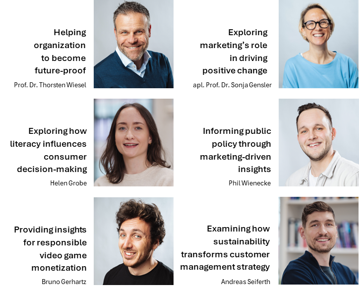 The Chair of Value-Based Marketing was established in 2012. Prof. Dr. Thorsten Wiesel and apl. Prof. Dr. Sonja Gensler as well as the rest of our team endeavors to meet the highest requirements in teaching and research with a powerful blend of commitment, joy, passion, and motivation.