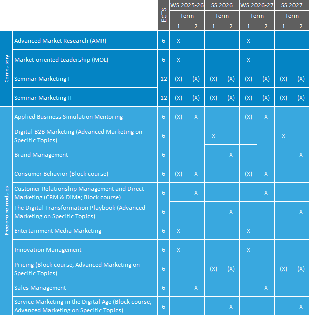 | The Full Master Marketing is eligible for the last time this winter semester 24/25. The new cohort in winter semester 25/26 will no longer be able to choose the Full Master Marketing. |