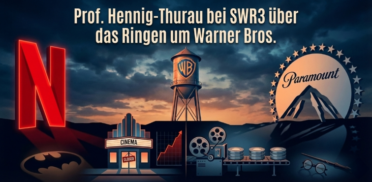 Der Bieterwettstreit um den Hollywood-Giganten Warner Bros. beschäftigt die Medienbranche. Während sich die Streaming-Plattform Netflix und das traditionsreiche Studio Paramount um die Übernahme des Konzerns mit seinem wertvollen Film- und Serienarchiv bewerben, stellt sich die Frage nach den Konsequenzen für das Publikum. MCM-Professor und Entertainment-Forscher Thorsten Hennig-Thurau hat im Radioprogramm von SWR3, Deutschlands reichweitenstärkstem ARD-Sender, die potenziellen Auswirkungen der beiden Szenarien bewertet.